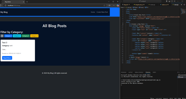 I went a little further than what was given to me in the practicum and I’ve fully changed the queries, now I added a new table with categories, to be able to categorize the posts. Once that was tested and working, I decided to apply some bootstrap to give it a proper interface.